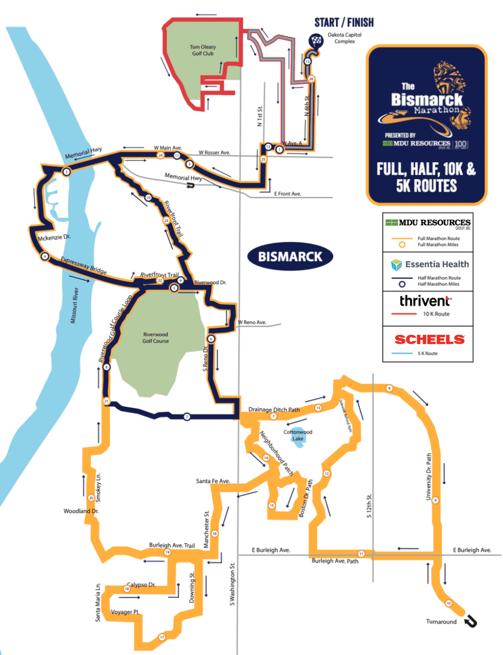 The MDU Resources Full, Essentia Health Half, and BNSF Railway Relay will all start at 7:30 AM.